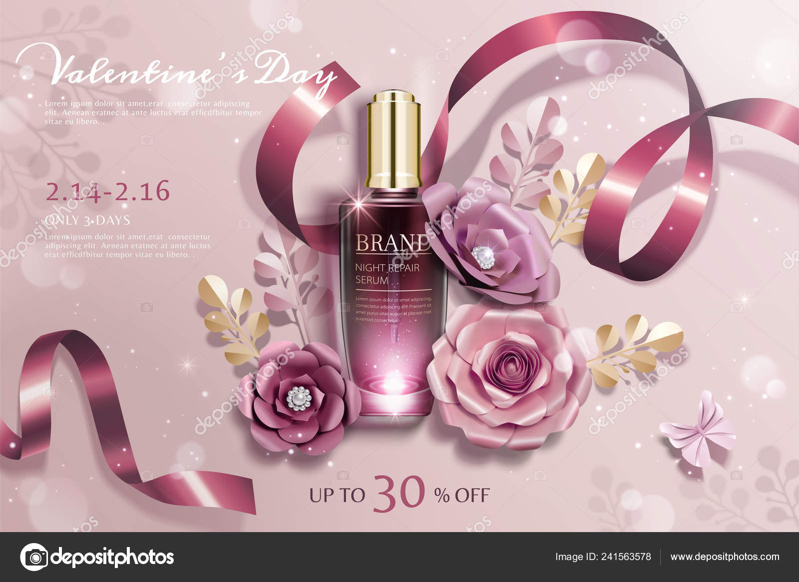 Happy Valentine Day Cosmetic Ads Paper Flowers Ribbons Decorations Stock Vector C Kchungtw 241563578 Cosmetics Calculator Mobile Version