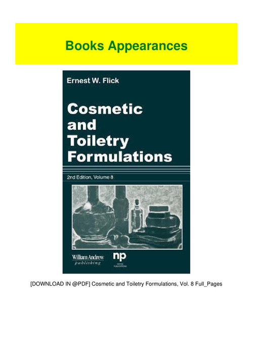 Flick cosmetic and toiletry formulations second edition volume 2 contains more than 1900 cosmetic and toiletry formulations based on information received from numerous industrial companies and other organizations. It is based on information obtained from industrial suppliers. The product roundup highlights ingredients and technologies from suppliers that have appeared in cosmetics toiletries.