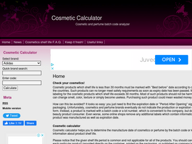 Cosmetic calculator helps you to determine the manufacture date of cosmetics or perfume by the batch code or lot number and provides general information about product shelf life. What is the shelf life of cosmetics. Cosmetic calculator mobile version.