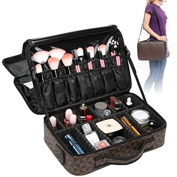 Travel makeup train case138 inches large cosmetic casemakeup brush holder organizer and storage with adjustable dividers and shoulder strap medium 3 layers plenty space. Professional large make up bag vanity case box cosmetic nail tech organiser bag. This cosmetic case has three layer large capacity sizel 138 w 39 h 94 inch.